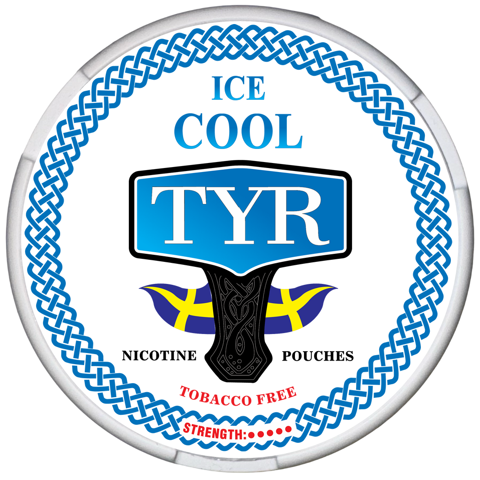 TYR ICE COOL, Denna produkt erbjuder en ren, sval mintsmak med en antydan av sötma. Den klassificeras som medelstark och innehåller 12 mg nikotin per portion, vilket motsvarar 20 mg nikotin per gram.