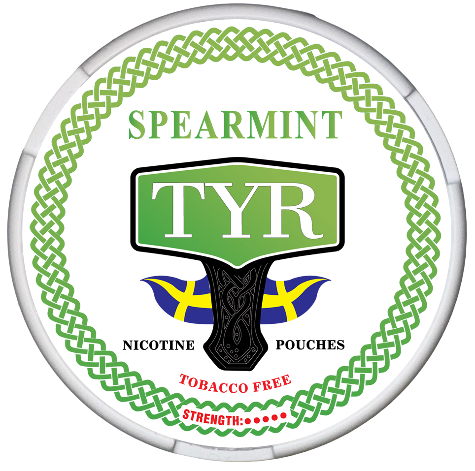 TYR SPEARMINT, Denna produkt kännetecknas av en mjuk och söt mintsmak med en sval avslutning (spearmint). Med 12 mg nikotin per portion, vilket motsvarar 20 mg/g, klassificeras styrkan som medelstark och ger en balanserad nikotinupplevelse.