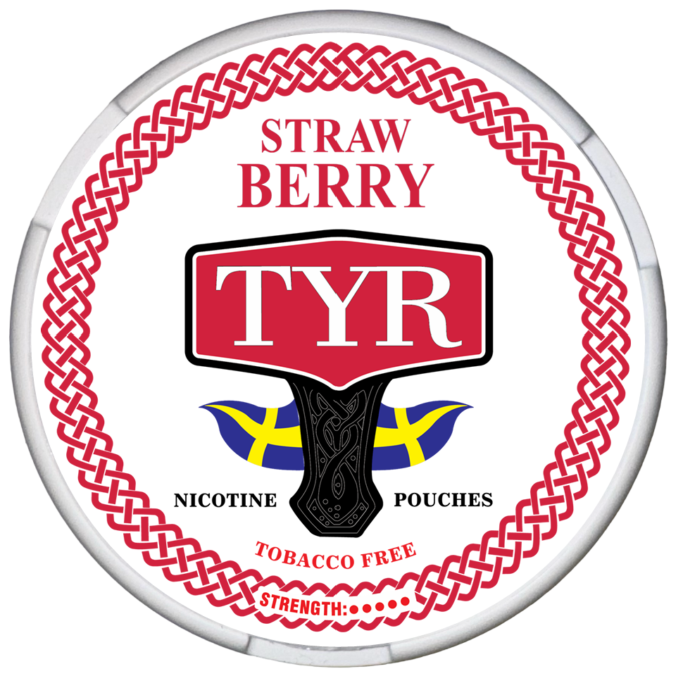 TYR STRAWBERRY, Denna produkt kännetecknas av en söt och naturlig jordgubbssmak med en mild friskhet. Med ett nikotininnehåll på 12 mg per portion (20 mg/g) klassificeras styrkan som medelstark och erbjuder en balanserad och aromatisk upplevelse.